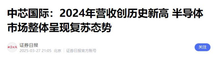 信息来源 证券日报 中芯国际:2024年营收创历史新高 半导体市场整体呈现复苏态势